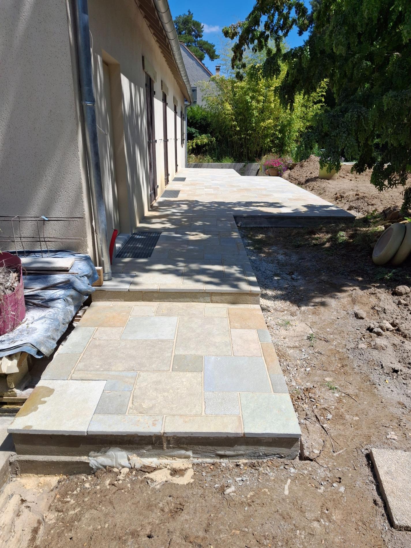 Création terrasse Dalles Travertin OPUS